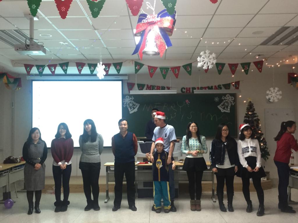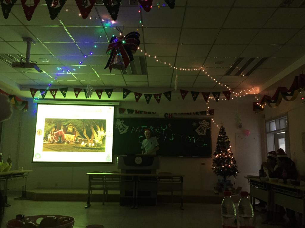活动中,David用PPT为大家介绍了英国人过圣诞的传统,同学们也各展才艺,把一个个精心准备的节目呈现给大家。在圣诞的歌声中,李东龙老师扮演的圣诞老人把一份份礼物和平安果送到每一个人手中。之后,老师们和同学们还进行了“谁是卧底”、“你猜我比划”等有趣的游戏,Rebecca也积极参加了很多小游戏,在欢歌笑语中度过了一个难忘的平安夜。