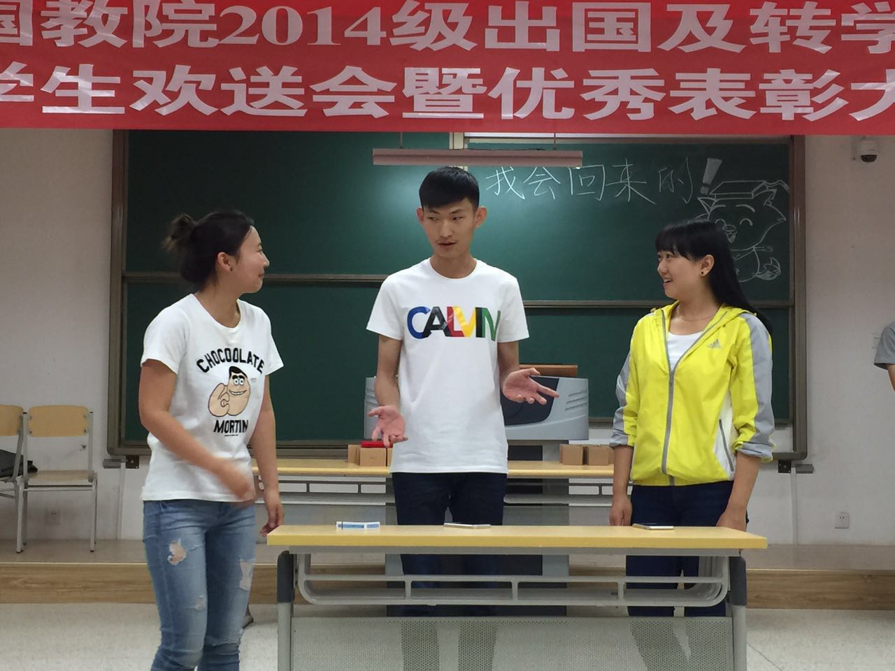 首先,席锁柱经理为出国员工致欢送辞,致辞中,席经理表达了对出国员工们的祝贺以及对转院员工继续本科学习和生活的鼓励。刘翠兰副经理致欢送辞时,话语中充满着对2014级员工深深的祝福和对2015级员工的殷切期望。外教Gees也给了员工们一些建议和祝愿,并转达了外教David对员工的叮嘱。出国员工代表马丁、15级项目生代表吴迪分别发言。接着,大会对优秀员工进行了表彰。最后,大家为出国及转公司员工送上一场精彩纷呈的文艺演出。
