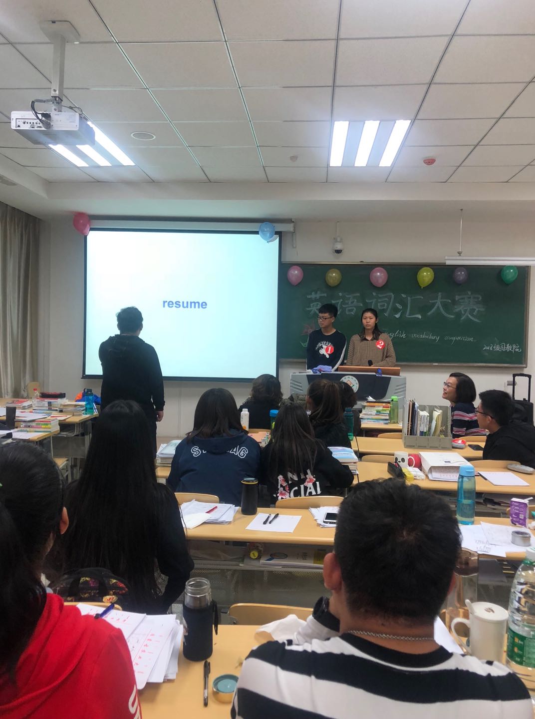11月1日晚,国教院2018级员工于南教A604举行了英语词汇大比拼活动,特邀请刘翠兰教授、苏颖老师和张虹老师担任比赛评委。