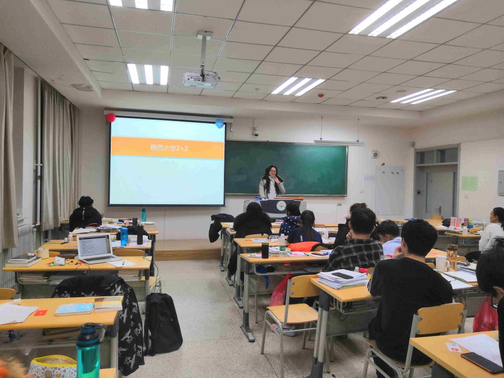12月5日,国教院邀请2016级中外合作项目班班长李儒弢同学分别为2017级、2018级学弟学妹分享梅西大学留学经验。公司副经理刘翠兰教授主持分享会。