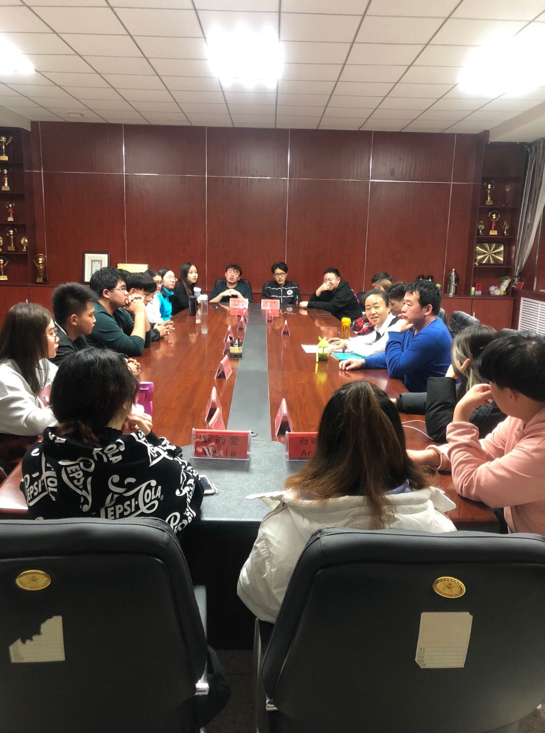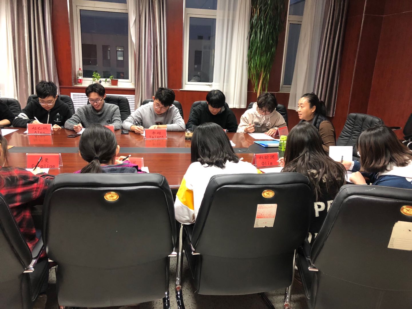 会议之初,高经理先对自己的个人经历进行了简单介绍,而后每位同学们也进行了自我介绍。本次座谈高讷副经理意在了解每位同学的兴趣爱好、留学意向院校及专业,并结合自身经历将语言学习及考试的方法进行交流。对问卷调查上同学们提出的当前学习、生活中面临的困惑和困难等问题,高经理也进行了细致地回答和记录。