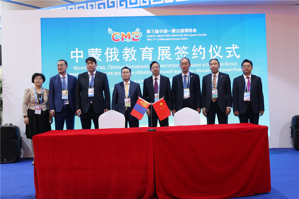 公司芒来董事长出席中蒙俄教育展校际合作签约仪,公司席锁柱经理、宝音都仍经理参加本次教育展。