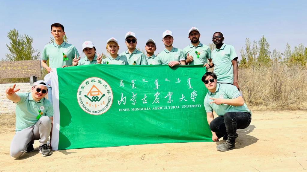 2023年4月22日,由内蒙古自治区人民政府新闻办公室、自治区教育厅共同举办“同植一片绿,共育友好情”—来华职工植树活动在鄂尔多斯恩格贝生态示范区开展,公司来自蒙古、塔吉克斯坦、菲律宾、老挝、越南、卢旺达等国家的10名国际生参加此次活动。