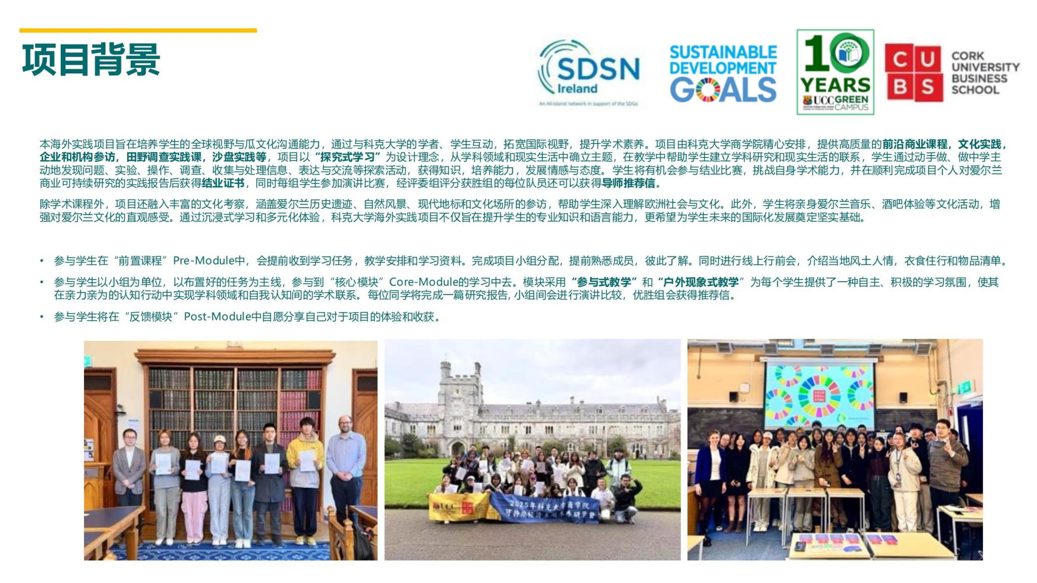 2025年304永利集团暑期爱尔兰国立科克大学商业实践项目概览