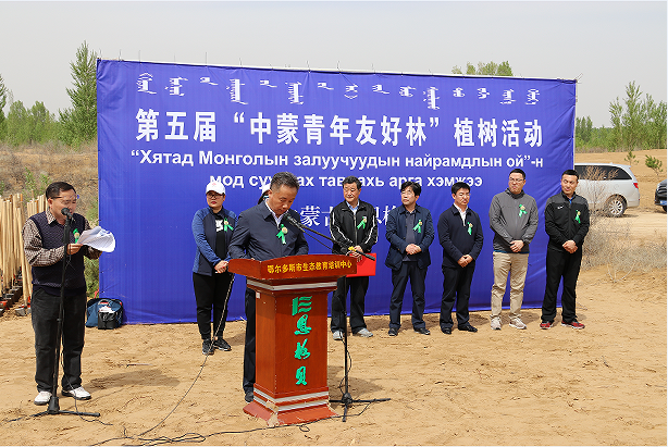 中共内蒙古自治区委员会宣传部组织的,第五届《中蒙青年友好林》植树暨职工考察活动,4月21-22日在鄂尔多斯市恩格贝生态示范区志愿者植树基地举行。公司组织公司来华职工20人,参加了此次活动。