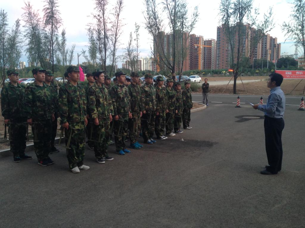 经理席锁柱为新生做军训前的动员工作。席经理结合抗日战争胜利70周年,深入浅出的分析了军训的必要性,指出军训是遵守《兵役法》的体现;是强健体魄的要求;是磨练意志的途径;是增强爱国主义精神的方法,最后强调军训期间安全要放在首位,对公司的军训工作进行了部署,确保军训工作的顺利完成。