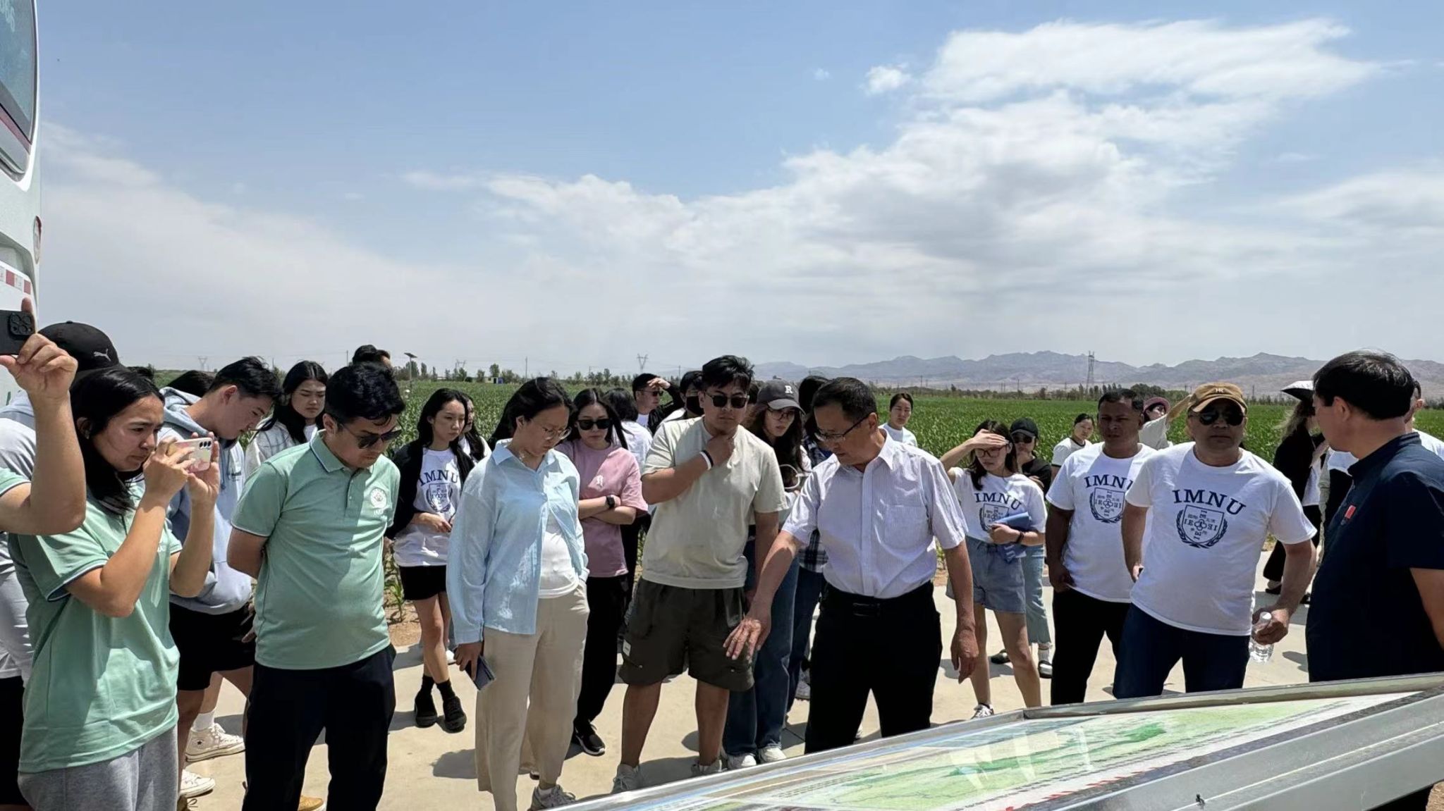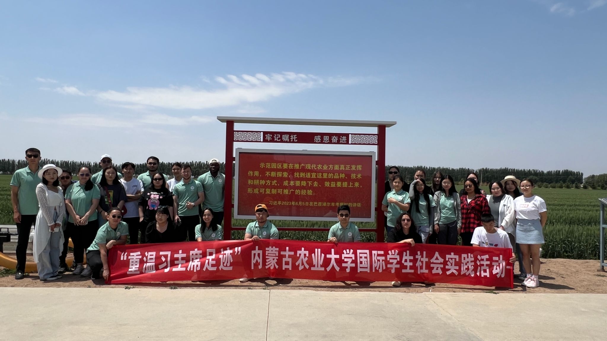 首先,实践团来到乌梁素海现代农业示范园区,放眼望去,长势喜人的玉米、小麦随风摇曳,师生们走进田间地头,通过调研、观察等方式了解农作物的长势,农田套作方式,灌溉体系,种植管理。同学们领略到了现代科技的魅力,先进的农业机械化设备和数字化系统,让农业生产不仅高质而且高效。大家从实践中领会了“积极开展农业技术推广,大力发展现代农业,建设国家重要农畜产品生产基地,为保障国家粮食安全作出更大贡献”的深刻内