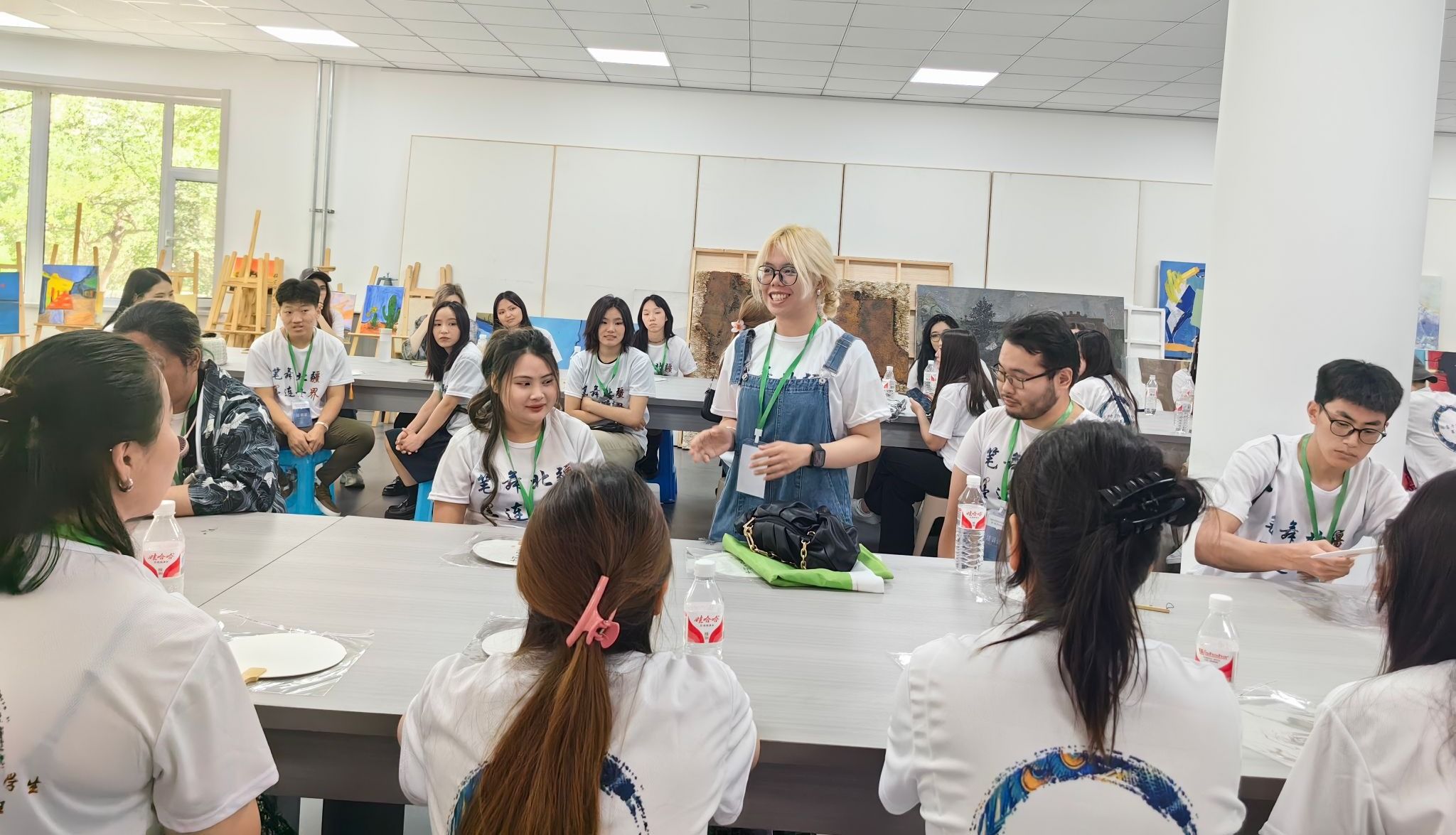 6月15日上午国际生参观了呼和浩特市美术馆(书画院)公园展厅正在展出的“内蒙古艺术公司新媒体公司2024届毕业生作品展”。呼和浩特市美术馆(书画院)馆长左大宁、内蒙古艺术公司优秀毕业生陈思宇分别为大家做了精彩的展览导览。